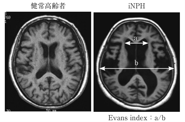 2010年代ごろから、歩きにくさ、認知機能低下、トイレに間に合わない、など、ご高齢の方に多く見られる症状の原因として注目されています。進行は比較的ゆっくりで、数か月単位で症状が進んでくることが多く、アルツハイマー型認知症など、認知機能低下をきたすほかの病気と区別が難しいことがあります。頭の中の圧力が急に上がることは少ないことから、正常圧水頭症と呼ばれています。