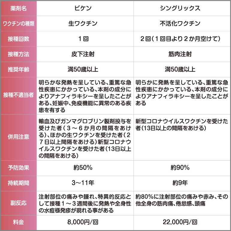 また帯状疱疹の予防としてワクチン接種が推奨されています。
